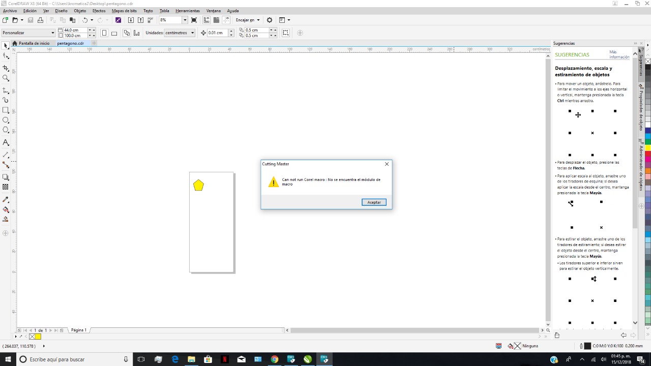 Cuando quiero mandar al plotter para poder decirle que corte el plotter(en la pestaña de los plugins donde aparece los corels de fonts, foto-paint... ),Hay ahi una opcion de Cortar/Plotear y le hago un click en ese boton y me aparece ese mensaje " Can not run Corel macro : : No se encuentra el modulo de macro " y la verdad ya intente viendo los tutoriales de youtube pero ninguno me sirve, si algien de aqui me puede explicar como hacerle estaria genial.