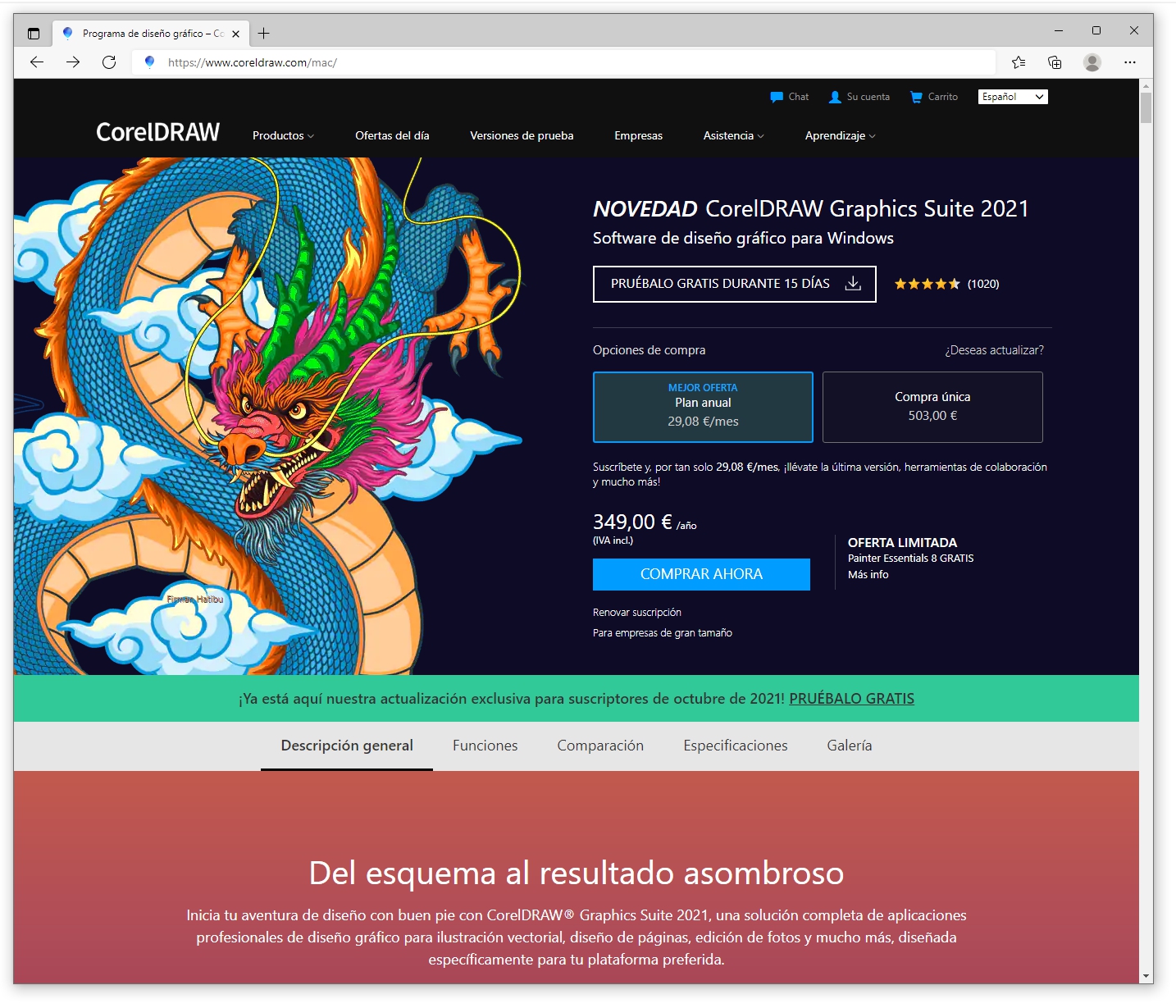 Descarga Digital Licencia perpetua de CorelDRAW Graphics Suite para Windows y Mac